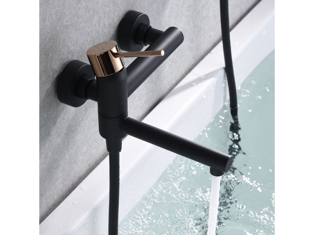Vaňová batéria IMEX Milos + hadica SET, držiak, ručná sprcha čierna matná/ružovo zlatáDodatočné parametre